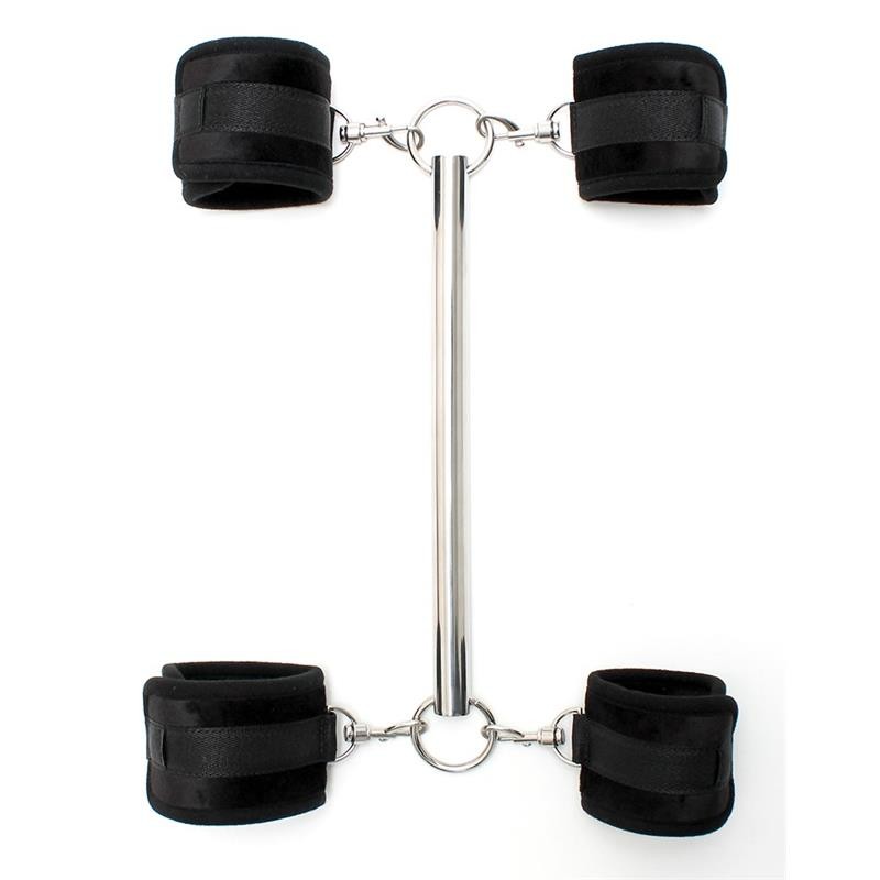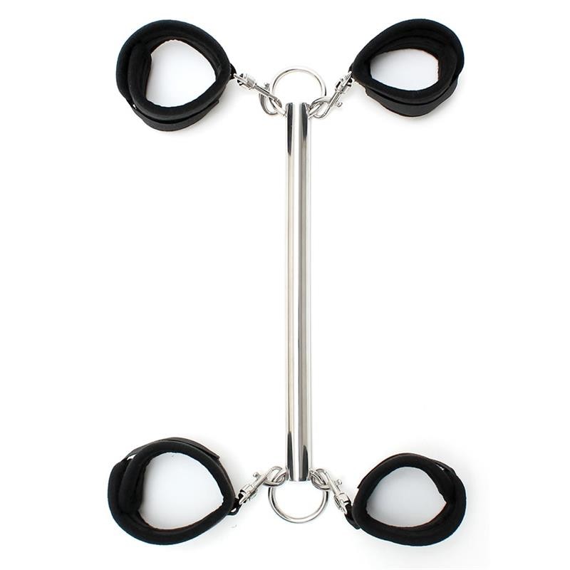 Barra separadora de metal de 30 cm de largo con 4 esposas de velcro que podrás poner y quitar cuando quieras.